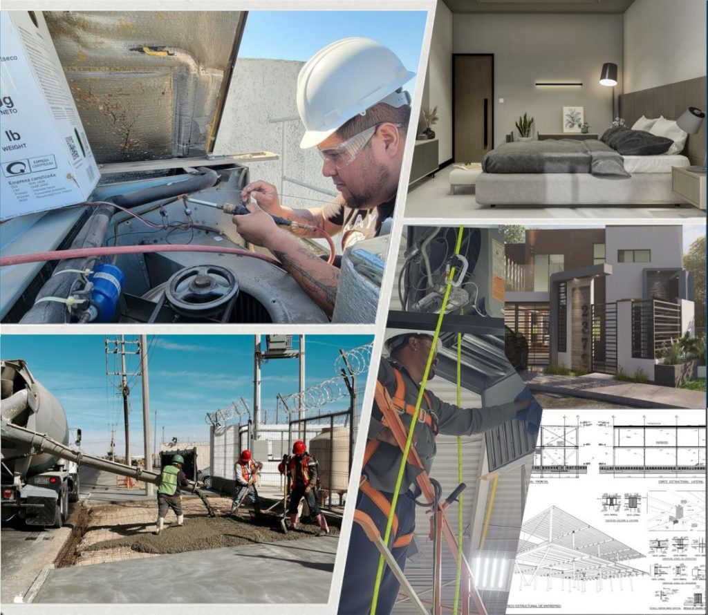 : Urbanización, Terracerías, Cimentación, Obra Civil, Estructura, albañilería, plomería, acabados finos, etc.