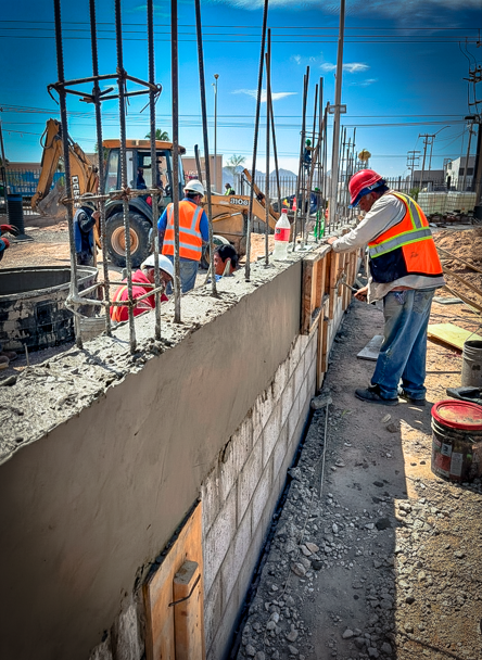 Elaboración de POZO 271 para la JMAS ubicado al interior de nave industrial dentro del complejo industrial INTERMEX, el trabajo consiste en zanjeo y canalización preliminar de línea de desfogue para interconectar POZO nuevo a pozo de absorción dentro de la nave industrial por medio de una línea de tubería de PVC de 8” instalada por nosotros, así como la elaboración de “Cajas Rompedoras” antes de la descarga al pozo. Elaboración de Registros y Cajas de operación de válvulas hidráulicas, Caseta de Operación, Bardas perimetrales de block relleno y reforzado con varillas de acero, elaboración de firmes de concreto, portones de herrería, herrería en ventanas, alambre de púas de protección en muros de block, entre otras actividades.